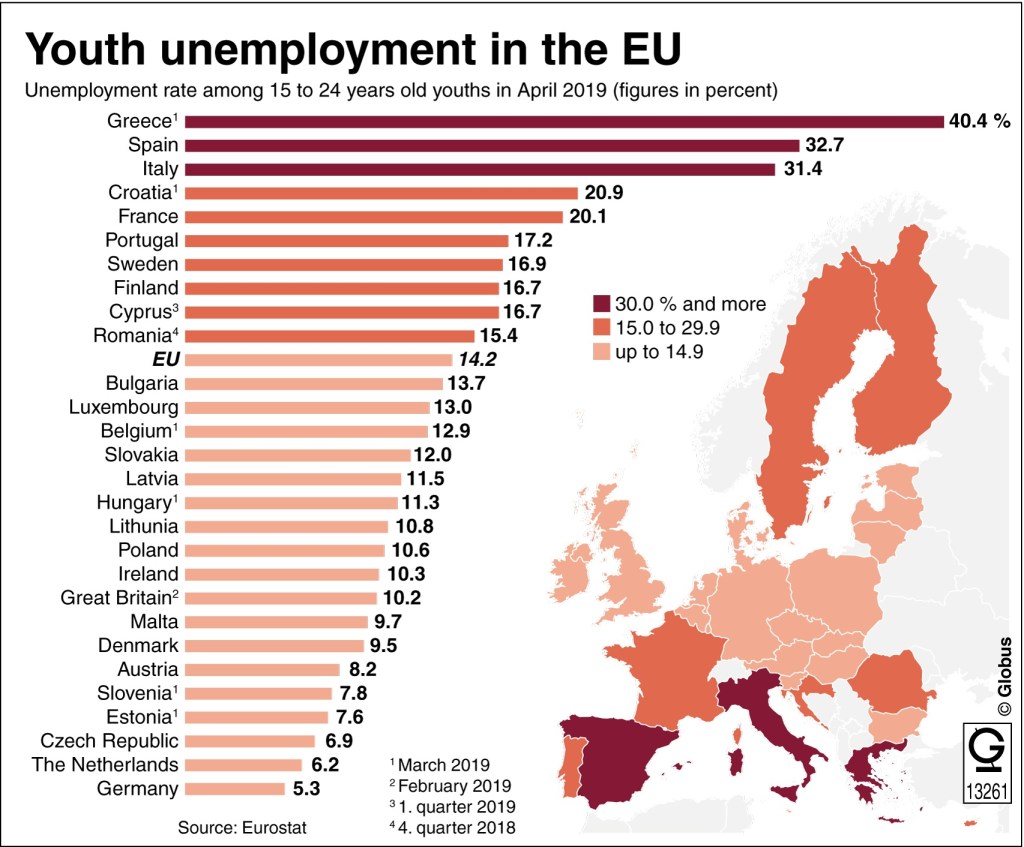 In Europe, youth unemployment is a disaster. Each country is dealing with a slightly different variation of the problem, and each has its own scapegoat but something is awry below the surface.
