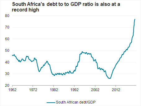 Emerging Markets are not immune either. South African government debt to GDP is also at record highs.