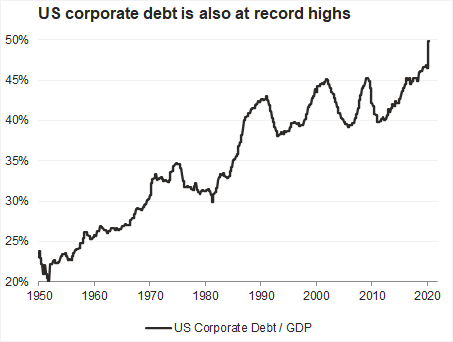 It is not just a public sector story. US corporate debt as a percentage of GDP is at record highs.
