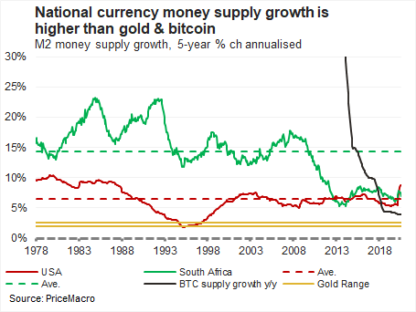 Bitcoin doesn’t have the history of gold, nor the institutional memory and (apart from its existing users) it isn’t as culturally entrenched. But it has a more conservative supply schedule. Gold’s supply grows between 2% and 2.5% each year, which is very low relative to national currencies, but new discoveries are still possible, which can boost supply growth. As the gold price rises, this incentivises gold miners to conduct riskier prospecting, bring new mines online and boost gold supplies. Additionally, a higher price encourages new scientific techniques to extract gold from waste substances, which weren’t profitable at lower prices. I.E. gold supply can increase, even though its very unlikely to grow much more than 2.5% per annum. At the extreme, large deposits could be found on asteroids. Here’s a humorous video of the Winklevoss twins making this point to Davy Day Trader Global (The cheerleader of retail trading in 2020): https://t.co/w4a4Mjs0Cy