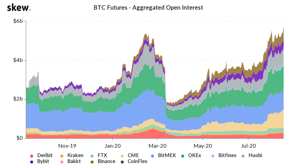 Total open interest rose to a new record high in August 2020, which is another confirmation of the growing interest in bitcoin. On one hand, this data is very bullish. On another hand, it also indicates the potential for downside volatility as leveraged speculators tend to quickly liquidate exposure if price momentum is less favourable. One needs to be careful if we witness a slowdown in open interest and price declines, like mid-March 2020. At one point in the week of March 13th, bitcoin fell 57%! Of course, there was the added pressure from global funding markets that emerged during the height of the coronavirus panic. The most important funding markets in the world started to seize up in March, which caused investors to liquidate investment positions as though they were in a fire sale. Gold and bitcoin do not fair well under these conditions because they are very easily to liquidate. I don’t foresee another of these events as an immediate concern due to the Fed’s monumental liquidity injection efforts, but I remain vigilant because there’s a lot of complexity hidden in the global eurodollar markets.