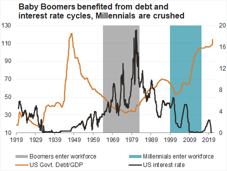 18 to 34-year old’s accounted for almost 70% of Black Lives Matter (BLM) protestors in New York, Minneapolis and Atlanta in 2020. This doesn’t surprise me. Millennials are a disgruntled segment of society whose financial aspirations are being crushed by a debt super cycle. I’m not saying this is the only cause for BLM, but it’s an important undertone. I expect that Millennials will join other disgruntled segments of society in the years ahead.