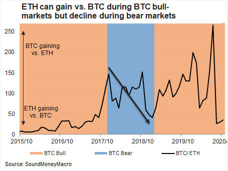 ETH tends to beat BTC during bull-markets