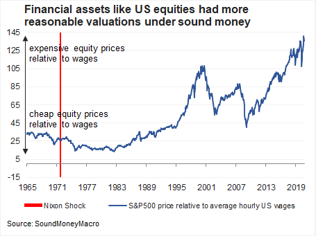 The consequences of the unsound monetary system have also become obvious since 1971. For example, financial assets were much more fairly valued before the Nixon Shock, which speaks to the unequal wealth impact of unsound money.