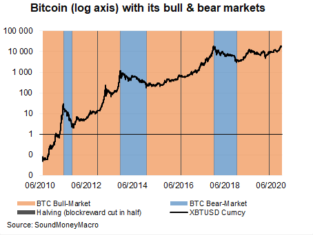 The outlook is always uncertain and I’ll try to avoid being foolhardy, but I expect we’re embarking on the next phase of a bitcoin bull-market that will last until Q4 2021 and see bitcoin between $50K and $100K. It may sound foolhardy to utter these words, but I was playing around the with data this week and it dawned on me just how systematically bitcoin revolves around the ‘halving’.