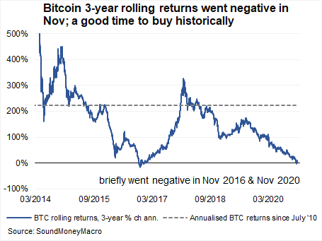 Yes, bitcoin remains volatile, but 1) volatility is declining & 2) bitcoin is storing value. Remember, bitcoin is positive over almost all 3-year rolling periods. Rule #1 in bitcoin investing; have a long time frame!