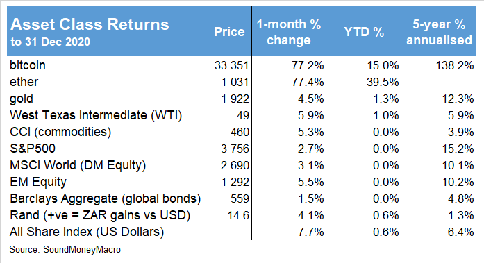 Just like 2009, authorities have morally justifiable reasons for their actions, but the truth of the matter is that most of this money has gone to government, large financial players, big businesses and those with ready access to government programmes. The man on the street is under severe pressure and inequality has ballooned through 2020. This dynamic is the same whether you’re in America, the UK or South Africa and its completely unsustainable. Politicians will follow up their 2020 policy justifications with wealth programmes to try and alleviate inequality but their inability to diagnose the problem implies that their responses will be patchwork solutions at best. More likely, their responses will exacerbate the problems that we’ve been speaking about in our monthly newsletter. How are you going to respond to this abuse? Bitcoin presents you with an opportunity.